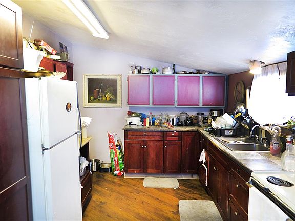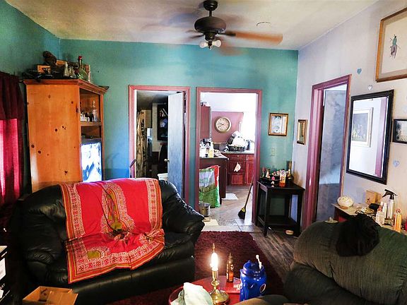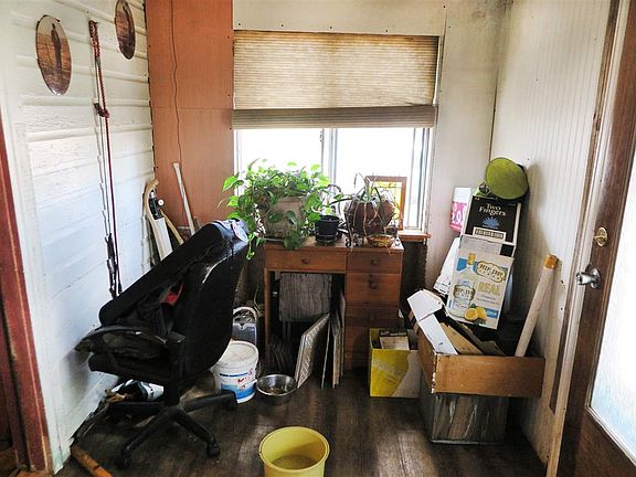 Pretty it up or push it over! The choice is yours and the options are endless. Large corner lot with outbuildings and great cement patio/parking area. Chain link and privacy fenced. This home is perfect for a renovation loan. 2 bedrooms plus a full bath and original hardwood floors.