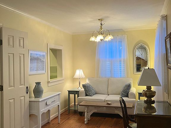 UNIQUE HISTORIC 'Kitchen House'.Essentially a studio. FULLY FURNISHED. Center of small house has historic fireplace originally outdoors for cooking in the 1800s. Now enclosed in a small cottage, the unit has 5 small separate areas: Kitchen, Dining room, Living room, Bedroom and updated bathroom with tiled shower with glass door ( no tub). Included are kitchen appliances, cookware, dishes, glasses, and silverware. Living room has sofa, two side tables with matching lamps, coffee table, console table with TV, desk and chair. Dining area has antique table with four chairs and corner bookcase. Bedroom has queen size bed, two side tables and lamps with curtain to separate area from living room. Art work on all walls. Linens provided.Downtown Beaufort. Walk to everything. Perfect Pied a Terre. Best for single person or couple.Views to formal gardens. Small porch. On Street parking. Owner pays for water and landscaping. Tenant pays electricity, gas ( if applicable) and internet. No smoking in or around house. Pets are allowed with owner's approval. Should pet cause issues to neighbors. pet must be removed.Lease is for one year although possibly negotiable. Tenant must bring trash and recycling bins to street early Monday mornings and return to property by end of day. No laundry on site. First month rent, last month rent and security deposit of $500 due at lease signing.