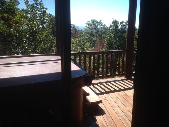 - Exterior: Porch, Wooded Lot, Private Location, Deck, Garden Spot, Hot Tub, Wrap Around Deck, Exterior Fireplace