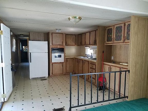 Quiet, one level living at the end of Clearwater Street in Kooskia Idaho. Large trees including pear and apple trees. Home has added peaked metal roof, covered front deck, New central air unit and newer hot water tank. Grey outbuilding is used as cold storage/root cellar. 1970 Fleetwood Mobile Home.
