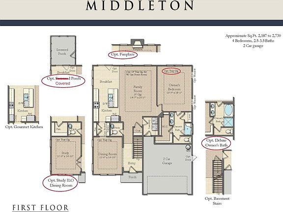 a study! Gourmet kitchen boast a large sitting island with a white Farmhouse sink, Glacier Gray cabinets, Stainless Steel appliances including a 5-burner gas cooktop, wall oven & microwave, quartz countertops & Tile Backsplash. 1st floor study, large open family room w/ gas fireplace and main floor laundry room. Primary bedroom on main with deluxe bathroom featuring a semi frameless glass shower, soaking tub,