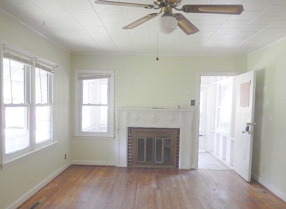 PRICE REDUCED !!! Ranch style 2 bedroom, 1 bath home in the quaint town of Johnston. Hardwood floors through out home. Brick wood burning fireplace in living room with ceiling fan. Entry hall with coat closet by front door. Kitchen has appliances, vinyl flooring, ceiling fan, plenty of cabinets and counter space, and plenty of windows overlooking yard with laundry room adjacent. Laundry room has washer, dryer and dishwasher with door leading to the outside. Sun room is on the side of home with ceiling fan. Home has awnings over windows. Hall has pulled down stairs to attic and linen closet. WITH REPAIR