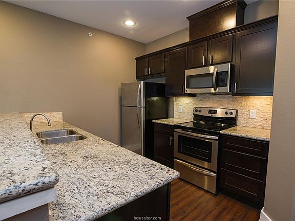 AVAILABLE NOW! Lease this pristine 1 bed/1.5 bath condo! Located steps from A&M and Northgate this beautiful condo features granite countertops, kitchen with an eating bar area, wood vinyl flooring throughout, spacious bedroom with a private bath and large, walk-in closet, a half bath for guests, lots of cabinet space, an attached PRIVATE 1-car garage, and washer/dryer. OWNER PAYS WATER! Don't miss out on this location and condo!