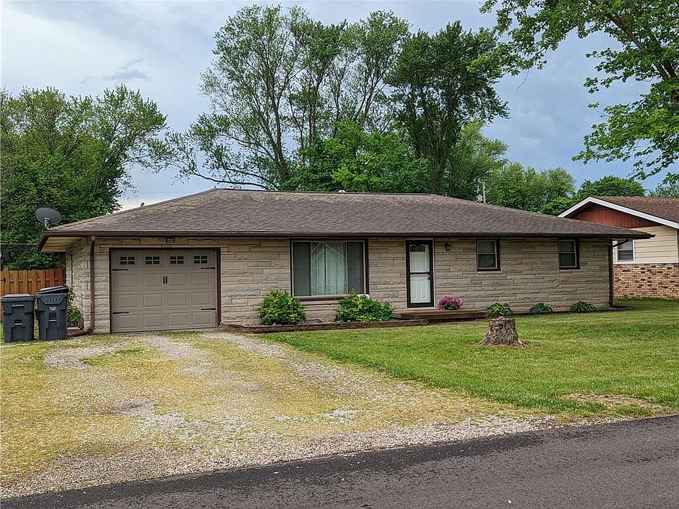Charming Bedford stone ranch with three bedrooms and 1.5 baths. Many recent updates, including ceiling fans in the bedrooms and living room, newer windows that let in lots of natural light, newer roof and HVAC. Attached one car garage and huge, fenced back yard! Spacious eat-in kitchen complete with stainless steel appliances. Quaint built in drawers and cabinet in hallway for extra storage. Washer and dryer stay. Spring fed wells supply amazing water for this house and NO WATER BILL! Don't miss out on this one!