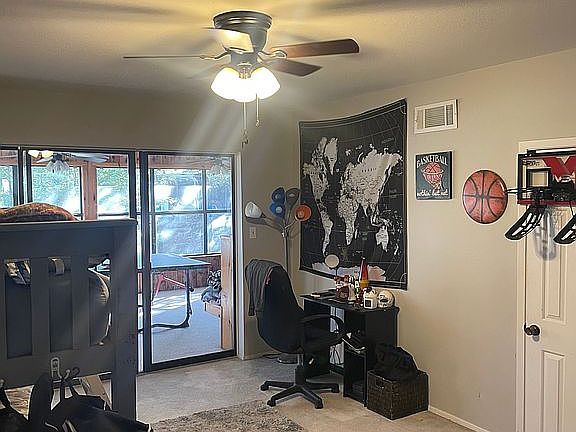 Cozy 3/2 on the water in a very quiet neighborhood with 275sqft game room. New back patio recently added. Pump in the lake runs Sprinkler system. Separate hot water heater in the mud room/garage for the washing machine. Roll up garage door and perfect amount of space to pull in golf cart etc. new paint throughout the house except one bathroom. New carpet in 2 rooms. New roof being installed soon. 1 bed 1 bath cabin next door with large patio and jacuzzi tub located next door that’s also available for an additional amount