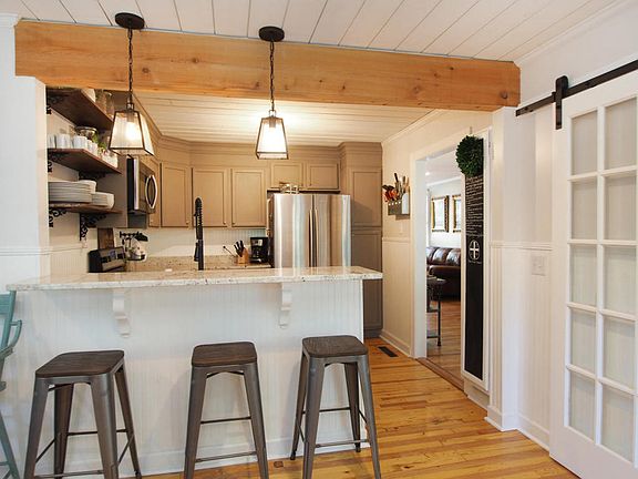 Newly remodeled home in desirable Southern Pines location. A short walk affords you the best restaurants, shops, parks, and even the local library. This home boasts the charm of a quaint farmhouse - Shiplap ceilings and walls, brick pavers, french doors on a barn door track, shilplap mudroom bench storage, board and batten brick exterior, built in storage, desk, customized bedroom closet and specialized master closet. Antique vanity in master bath with granite top is a beautiful accent to the walk in shower with a rain head that allows an escape we all need. The large screened in porch is the thing of every Southerner's dreams. The double fans keep it comfortable as well as beautiful. The yard is huge, boasting a private and mature landscape with a new patio and
