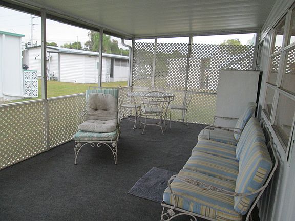 Come see this cheerful 2/1 bath home that is located in a 55 retirement community! Features an open living area, plenty of natural light, a screened porch for relaxing and plenty of storage inside and out! Call Us Today! Priced to Sell! This land lease 55 community is centrally located, pet friendly and offers many amenities!