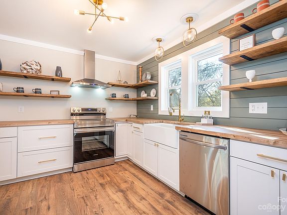 3 bedrooms and 1.5 baths. The 3rd bedroom features custom-made barn doors and would make a great office. Enjoy your front porch swing on the large covered porch. This established yard has shrubs and trees that will bloom in late spring. Large driveway by the backdoor offers parking for multiple cars. Conveniently located close to Epic Chophouse, Barcelona, Mill One, Liberty Park, Mooresville Golf Club and Mitchell Community College.