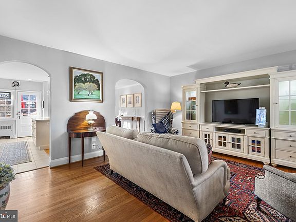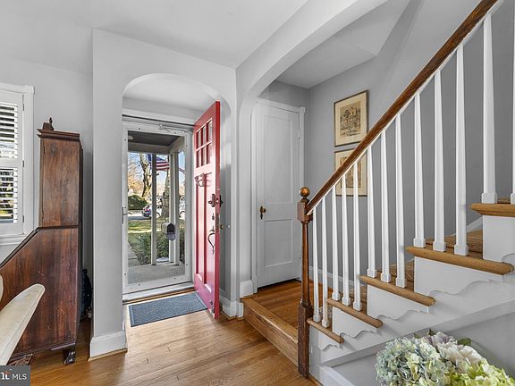 Great Rodgers Forge location with extra deep setback from street. Large covered front porch perfect for entertaining or just relaxing.  Foyer with archway to formal Living Room with additional archways to Kitchen and Dining Room. Formal Dining Room with open flow to totally renovated Kitchen featuring soft ivory solid wood cabinets, quartz counters and GE black stainless steel appliances. Refinished hardwood floors on main level. Primary Bedroom plus 2 additional Bedrooms and hall Bath on 2nd level. Lower Level with renovated Family Room,  Powder Room and Laundry/Utility Room. Fenced back yard with Deck and Patio. Replaced windows, maintained slate roof, detached 1-car garage and 1-car parking pad. Wide street with never a shortage of available parking.