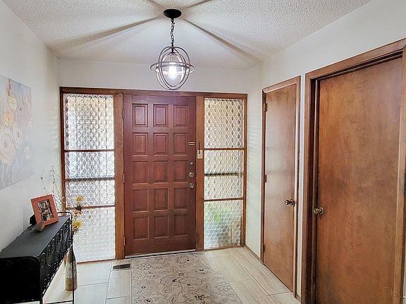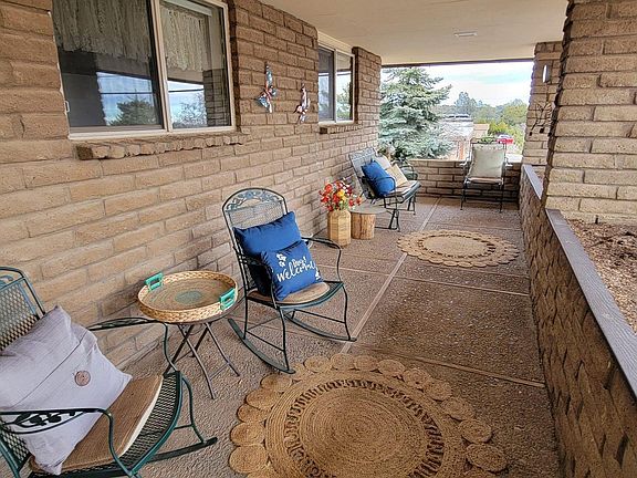 Charming, one level, 3 bedroom, 3 bath home at the end of the road in a quiet, established neighborhood close to schools and downtown. Two primary bedroom suites have ensuite bathrooms with double closets. A third bedroom has built-ins with a sliding glass door leading to a 200 sq. foot sunroom with mountain views to the north. There are uncovered patios on the east and west side of the home surrrounded by mature plantings and large trees. A covered front porch is perfect for relaxing in the shade. The low maintenance yard features room for RV parking in the back. All city utilities with refrigerated, central air. Slump block construction, standing seam metal roof and roomy two-car garage with storage round out this freshly updated, 1970’s classic home.
