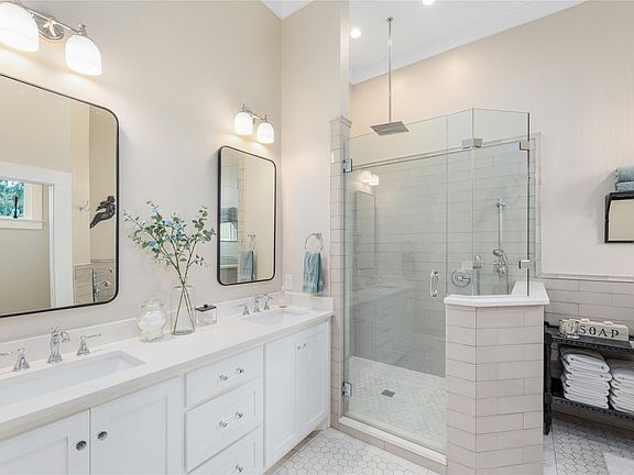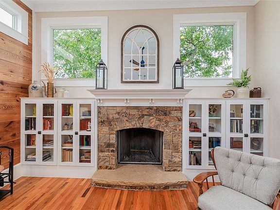 Stone fireplaceLegacy treesLuxury finishesCustom built-insReclaimed oak hardwood floorsProfessionally landscaped half-acre lotSpacious island