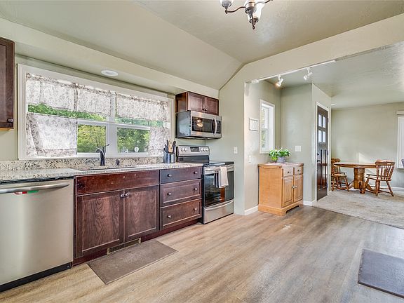 ASSUMABLE INTEREST RATE AT 2.25%! Welcome to this delightful 1940s gem, nestled in the heart of Kalispell on a corner lot. This beautifully preserved home blends vintage charm with modern comforts, making it an ideal place to call home. Step inside to discover a spacious 4-bedroom, 3-bath layout featuring a versatile bonus room that can easily serve as a home office, playroom, or additional living area—adapting to your lifestyle needs. The updated kitchen boasts sleek granite countertops and modern cabinetry. The main floor includes two comfortable bedrooms and a full bathroom, while the upper level features two additional bedrooms and a convenient 3/4 bath. The partially finished basement provides even more flexibility, with a newly installed bathroom, a bonus room, and ample storage space. Outside, enjoy your fenced backyard, complete with a covered deck, garden shed, and room for RV parking. Situated within walking distance to downtown Kalispell, with easy access to local shops, restaurants, parks, and schools, making this location both convenient and desirable.