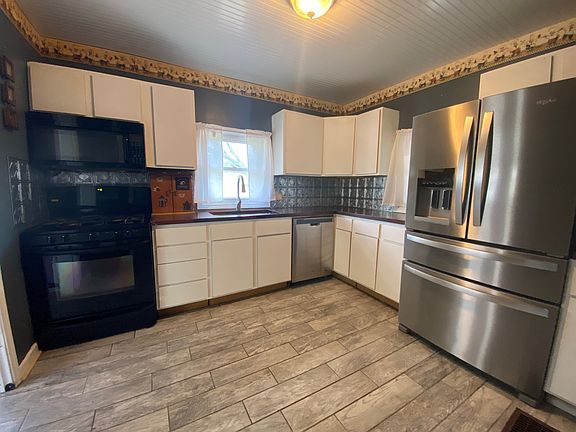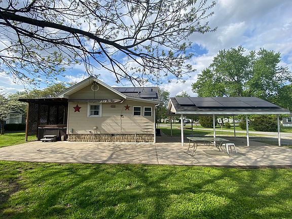 This great find is located at the edge of town and has had numerous upgrades. The kitchen has been updated with wood look ceramic tile, beadboard ceiling, and upscale appliances(included). The tile continues into the mudroom and dining area. The bathroom has had a complete remodel and includes a new vanity, custom walk in shower, and beadboard ceiling. Both bedrooms are nice size and have newer carpeting. The home has replacement windows throughout. The basement area is partially finished (not included in the square footage) and provides room for endless possibilities. Outside you'll find an inviting front porch, new rooftop solar panels that have been installed to help offset the electric bills and a 30' x 40' pole barn built in 2016. The barn has a large overhead door, loft storage area, and an insulated room for exercise equipment, etc. The spacious backyard has a large concrete patio with included remote retractable awning and plenty of room for outdoor entertaining.