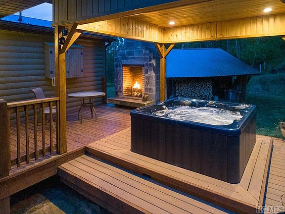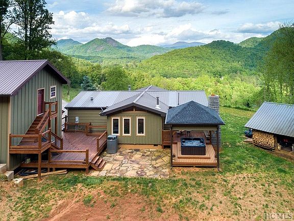 Looking for a MIni Farm with PRIVACY AND VIEWS? Look no more, this 3/2 Bath Ranch (Double Wide Frame) has been renovated to become a log cabin with main level living. D-log siding on the exterior with Block Foundation. T&G walls and Ceilings with a combination of Red Oak, yellow pine and poplar. Complete with fireplace with gas logs with 100 year old Barn Wood hand hewn custom mantle. Oak hardwoods in living area and master bedroom. Large Master ensuite with Ceramic Tile shower and floors, Corian countertops throughout. Kitchen consists of gas Range/oven, corian countertops, ceramic tile floors and upgraded stainless steel appliances. Relax on the front porch and enjoy the panoramic vistas or chill in the Covered outdoor Hot Tub by the Outdoor Fireplace with TV on the deck. Double Detached NEW garage with unfinished studio upstairs, separate entrance with 2x6 studded construction, Garage door openers with Board and Batten Siding. Plenty of room for cows, horses, chickens and more. Barn is on the property. Just 10 minutes from WCU and Grocery Store, 20 minutes to Downtown Sylva for shopping, breweries and great dining. Come see this great unique family home today!