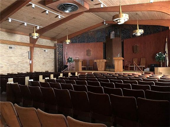 This amazing building is in a residential zoned area but is currently owned by a business with a variance. There are many large rooms which can be used as offices or classrooms. Large equipped commercial kitchen, large men's and women's bathrooms and coat closet, storage rooms, two super large common area rooms and parking for 70 cars. The kitchen size is 20x17, 6 office rooms measure 16x12, 2 rooms combined into 1 measures 24x16, large office is 21x16 and library is 17x18. An additional office measures 24x22. Common areas measure 42x36 and 36x32.