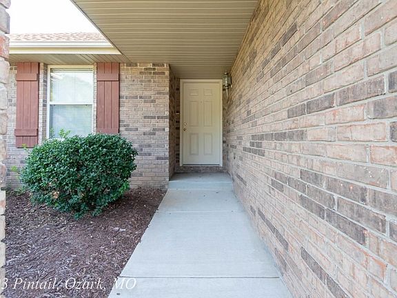 403 E. Pintail Dr., Ozark, MO 65721.All brick, 2 car garage house on a great lot. Tile flooring in kitchen, bathroom, laundry room and covered entryway. Raised ceilings, ceiling fans, attic fan. Gas fireplace, wood trim, shutters. Patio and landscaping. Along a cul-de-sac street.