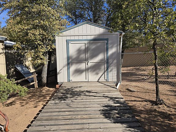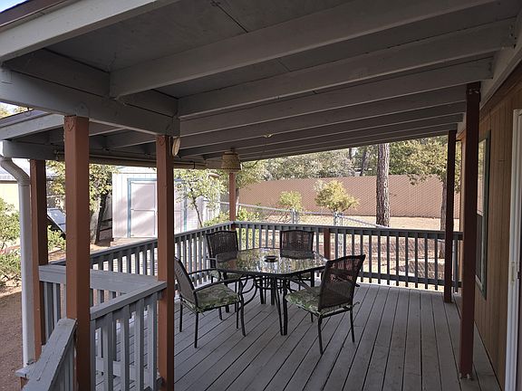 Sited among mature trees near the end of a private road off E Rancho Rd in Payson, this well maintained home with a large lot is a must see! Recent improvements include a conversion from piped in propane to all electric, a new roof, HVAC system, brand new oven/stove, additional landscaping and chain link fencing to completely enclose the back and side yards. Other notable features include ample parking for vehicles/RV, handicap access ramp, large toy storage shed plus a separate workshop. Available as a turn key property with all furnishings included at no additional cost or specified value to the buyer(s).