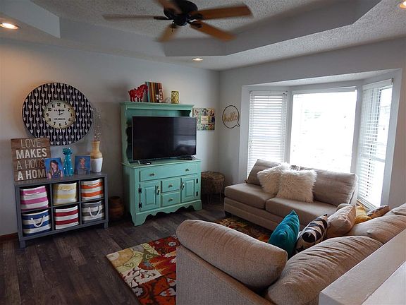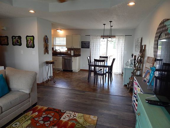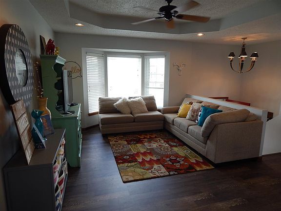 This move in ready split level features neutral paint colors throughout; newer flooring was installed in the living room, hallway, two bedrooms, main floor bathroom, steps, and family room in the basement in October 2016. The electric range, microwave, and dishwasher are ten months old. New ceiling fans were installed in the bedrooms. The walkout basement leads to the fenced in back yard. Storage shed and dog kennel stay. The lot extends outside the privacy fence; triangle shaped space is part of the lot.