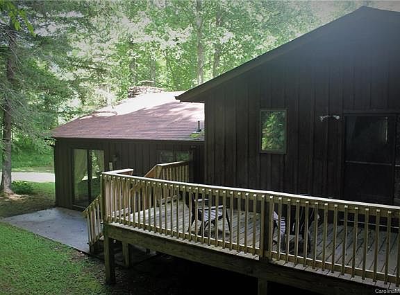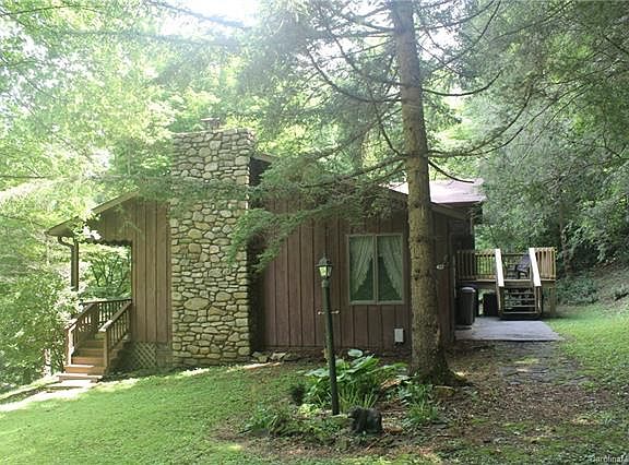 Well maintained, beautiful, solid built home tucked away on 6.5 acres of complete privacy. Mountain living at its best. Quiet, park like setting with easy access with two driveways and only 35 minutes to Asheville makes this property an unique find. This 3 bed, 2 bath split level, move in ready home features all hardwood floors, no carpet, open living area with stone fireplace with insert. Dining area opens to back patio. Tongue and groove paneling in the entry hall and living room. Master bedroom opens to a private deck. Family or entertainment room in basement with wood stove could easily be converted to mother-in law suite with separate full bath, entrance and driveway. Fenced area for your furry family members. Contains two tracts.