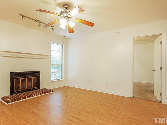 This Cary one-story offers a fireplace, a walk-in master closet, a breakfast bar, and a covered patio.