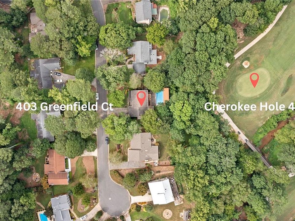 GOLF COURSE LOT WITH A POOL ON CHEROKEE HOLE 4! While this home is move-in ready, it also presents a fantastic opportunity for those eager to add their personal flair and modern updates. With solid bones and classic features throughout, you’ll find the ideal canvas to create your dream haven. When you enter the home, you are greeted by a large living room and a separate dining room offering plenty of space for entertaining or relaxing. The highlight of the kitchen is the large 6 burner gas range with double ovens and vent hood. The kitchen offers easy access to the swimming pool. The kitchen flows seamlessly to the family room and there is a main level bedroom and full bathroom. Upstairs has 4 spacious bedrooms. The oversized primary bedroom features vaulted ceilings and provides a peaceful retreat. It is hard to find bedrooms as large as the 3 secondary bedrooms with ample closet space. There are 2 large walk-in closets that may provide the opportunity to add a third full bathroom on the upper level. Enjoy sweeping golf course views from the screened in porch and deck overlooking the swimming pool. There is plenty of space to entertain indoors and outdoors in the backyard oasis. Perfect for those seeking both value and location, this property invites you to reimagine, renovate, and truly make it your own.