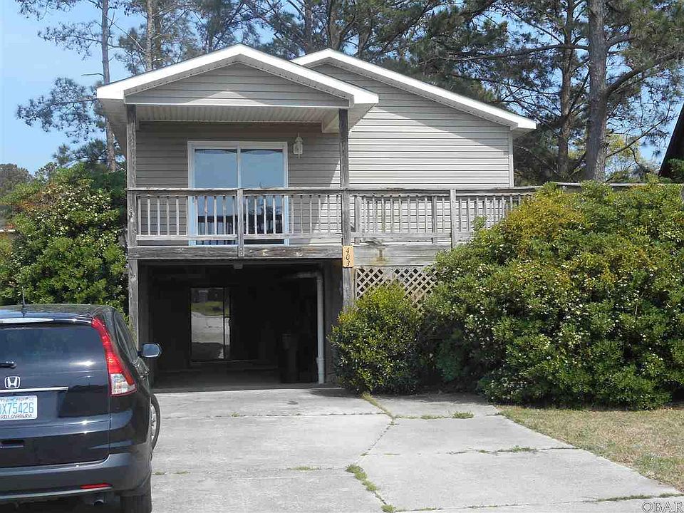 Good opportunity for a first time buyer to have an AFFORDABLE home. The top floor has 3 bedrooms, one a MASTER. Both bathrooms are TILED FLOOR AND SHOWERS. Hardwood floors in living and kitchen area, carpet in the bedrooms. The kitchen appliances are all newer models. Dare County records list the house as 1632 square feet for the structure, with 624 enclosed downstairs for storage. There's a large private outside shower stall with hot and cold water pipes capped off, ready to have shower head installed by the new owner. Mature bushes offer privacy on both sides along with the front save for the carport opening for cool air flow and seclusion. EXTRA LARGE double driveway can park more than ample number of cars and boats. This house is a great buy for the price. Come check it out.