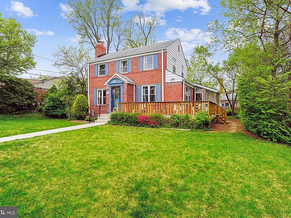 A stately 1948 Brick Colonial with a roomy floorplan, attractive oak hardwood floors, a wood-burning fireplace with a handsome mantel, a new gas furnace, and 2.5 bathrooms over 3 finished levels well cared for by long-time owner; it will win your heart! Located close to shopping, transportation, and major commuting roads, but tucked away on a low-traffic street with a 65 Walkable score and 52 Good Transit Score. When entertaining the large dining area can hold a long table open to the Living Room, where guests can spread out nearby. The kitchen has been updated in the past and offers good counter space and gas cooking. A convenient half bathroom is on the main level for guests. The den was added to the rear of the house and can be a great office and/or guest space. Upstairs are 3 spacious bedrooms and a full bathroom with a tub and pull-down steps to attic storage. The basement has a roomy Recreation room, full bathroom, laundry room, and utility room. There's a rear entrance to the basement with stairs. Sitting well back from the street, an attractive side porch surrounds the side of the house and leads to an enclosed outdoor private space with room for a table and chairs with electric lighting and a fan. Enjoy drinks and dinner here on warm nights safe from insects. The back garden is fenced and manageable with a stone patio across the rear and a storage shed - there's room for Gardner's to have fun front and back. The superb location is close to I-495, Metro at Forest Glen and Silver Spring, Four Corners Shopping Center & Park, Sligo Creek Park, and Holy Cross Hospital. It's a 3 block walk to Safeway Grocery & Woodmore shopping center with CVS & the cherished Woodmore Pastry Shop. There are several restaurants you can walk to and downtown Silver Spring with many more is a short ride away. If you love nature Northwest Branch Park is nearby. Economical gas heat (furnace new 1/24), Central Air Conditioning and tankless gas hot water help you stay comfortable. There's easy street parking on a low-traffic street. Double-pane windows help keep the home energy efficient. You may want to customize paint colors later, but this home is ready to go as it commands your attention, and reaches out to your heart. This property is eligible for the MMCT (majority-minority census tract) program that allows for zero down financing (max loan amount of $766,550) with no Private Mortgage Insurance (PMI). Contact the agent for lender details. Public Open Houses Saturday 4/20 - 2 to 4 pm and Sunday 4/21 -1 pm to 4 pm