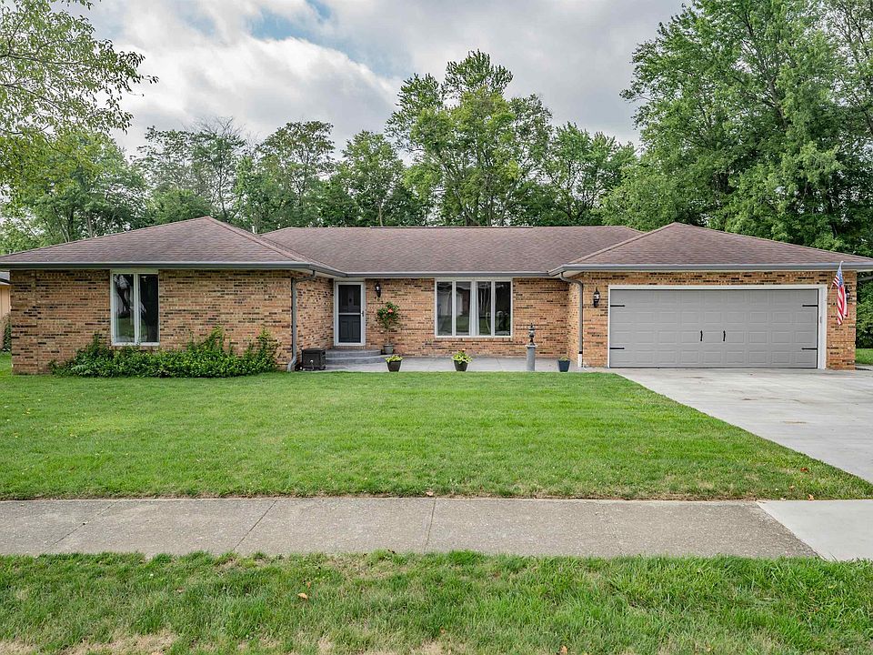 Incredibly refreshed rambling ranch w/ lots of updates, multiple living spaces, soaring ceilings, sunroom & large private feeling back yard is a must see & move-in ready! Tucked away in quiet & peaceful area on 0.42 acre lot backing up to tree line, this 3 bedroom, 2.5 bath home has everything you need! Classic brick exterior is charming & attractive w/ attached 2 car garage, select landscaping & wide central front porch w/ plenty of room for outdoor furniture, accent plants & decor. Once you step inside however, you might not believe this home was built in 1972 as it has been completely revamped & is simply gorgeous! Bright & welcoming atmosphere is complemented by all new flooring & lighting & soft neutral color palette severing as the perfect backdrop to your own personal style! Generous front living room is bathed in natural light from almost floor to ceiling big picture windows & links to kitchen/dining on one side & bedrooms down the hall. Spacious formal dining area is great for entertaining & part of truly stunning chef’s delight kitchen. Sure to be a popular gathering point, kitchen features beautiful hard surface countertops (also in all 3 baths), under cabinet motion lights, deep 2-door pantry, double oven, gas cooktop on central island w/ seating, high end SS appliances, slow close drawers, tile backsplash & abundant custom designed cabinetry. Laundry room w/ sink & storage off kitchen as well as half bath. Fantastic massive family room has cathedral ceiling, 2 skylights & spectacular floor to ceiling stone fireplace w/ gas log insert thermostat controlled for your comfort & double barn doors to close it off from dining. Wood paneled 3 seasons room behind French doors provides excellent flex space w/ views of green & sliding glass doors w/ steps down to back yard. Picture perfect primary bedroom has bump out bonus area & tv worthy en suite w/ double sink vanity & amazing tiled walk-in shower. Remaining bedrooms are comfortably sized w/ ample storage throughout. Stylish main bath also has double sink vanity & intricate tile work in tub/shower combo. Other updates to note: digitally monitored & encapsulated crawl, Perimeter Drain System, 2020 Unique Gutter Solutions, updated HVAC, tankless water heater installed 2021 along w/ underground invisible pet fence. All kinds of room in back yard for outdoor fun & BBQs w/ free standing shed for overflow tools & toys. Easy access to both IN-213 & US-35. Don't let this one slip away, take action today!
