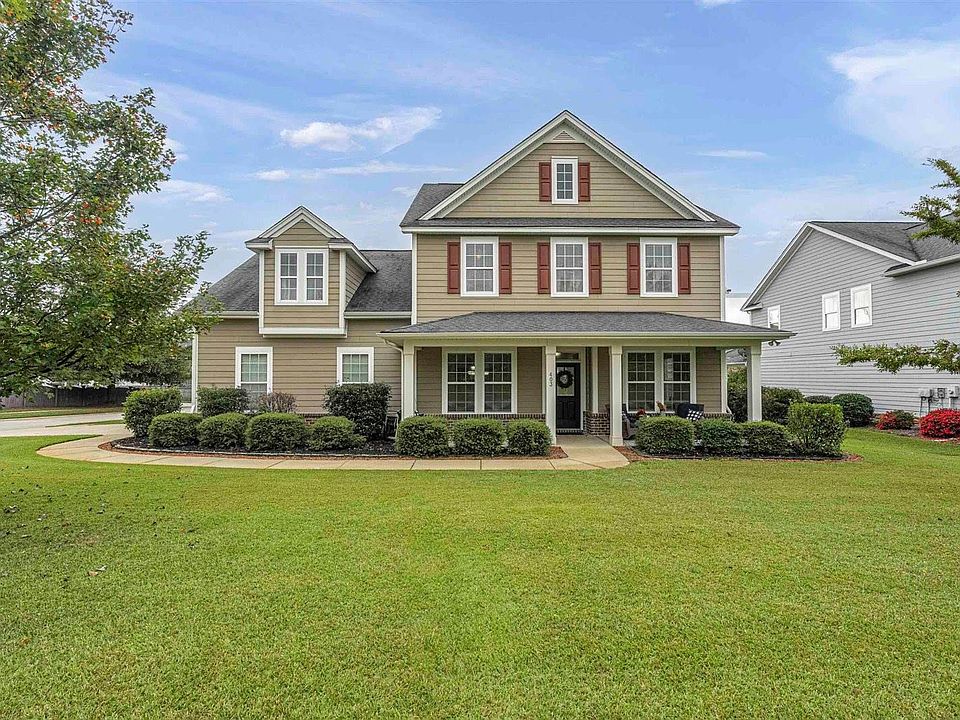 Welcome to your next home in the highly sought-after Summerlake neighborhood! This stunning 5-bedroom craftsman residence is perfectly situated across the street from the community playground and athletic field, making it ideal for families and active lifestyles. Step inside to discover an inviting open layout featuring gorgeous newer LVP flooring and fresh paint throughout. With room for everyone, this home features both a formal living and dining room and a perfect open concept entertaining space including the spacious great room with gas-log fireplace, eat-in area and kitchen. The beautiful kitchen features granite countertops, stainless steel appliances, tiled backsplash and pantry. The main floor also boasts a spacious bedroom and a full bath, perfect for in-laws or guests seeking privacy. Upstairs, the luxurious primary suite awaits, complete with dual granite vanities and a separate garden tub and shower. Three additional well-appointed bedrooms and a generous bonus room provide ample space for relaxation and entertainment. A covered back porch awaits outside for you to enjoy the fall evenings in the spacious flat backyard. Enjoy the convenience of being within walking distance to Beechwood Middle School, as well as access to community amenities including a 15-acre stocked fishing pond, disc golf course, boat storage, and walking trails. Don't miss your chance to own this beautifully updated craftsman home in a vibrant neighborhood where every day feels like a getaway! Schedule your private tour today!
