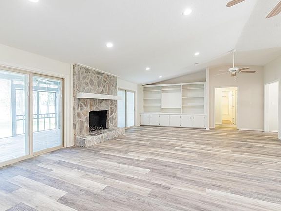 Life on the Lake. Come enjoy skiing, swimming, fishing or jet skis on beautiful Long Pond. Gorgeous updated home has beautiful luxury vinyl flooring all throughout. All new lighting & patio doors with built in blinds. Freshly painted interior & exterior. GR has recessed lighting & stacked stone FP. Built in cabinetry. Very open floor plan. Gorgeous granite counter tops in kitchen large BK bar & tons of counter space perfect for entertaining. Walk in pantry. Freshly painted white cabinets with new pulls. New stainless appliances. Large laundry room with cabinets. MBR is very large with patio doors leading to porch. MBA with new granite tops & sinks,& tile shower. . 2 guest BRs share the hall bath. Back BR has a large sitting room that could be converted into a 4th BR. Huge screened back porch overlooking the lake with gorgeous cypress trees. Boat house & dock .23x25 game room/guest room.