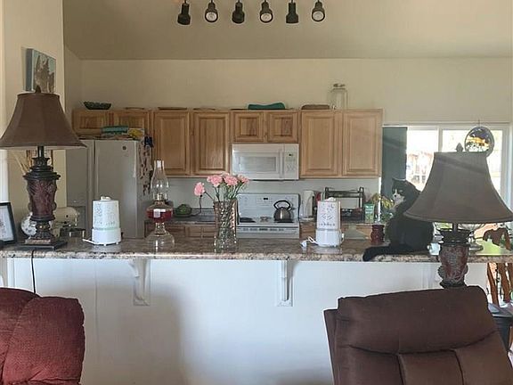CUTE 3 bedroom, 2 bath home with great views. Open living area with your livingroom, dining room and kitchen has new counter tops, all appliances stay including a brand new french door GE refrigerator with filtered ice and wateer dispenser on the outside. Also new are large size Maytag Commercial Technology washer and dryer. Other features include a Culligan water softener and a reverse osmosis at the kitchen sink. Wide hallway to the bedrooms and baths. Gas furnace and central air keep the home comfortagle year around. Home has vaulted ceilings with ceiling Master bedroom with walk in closet and wall to wall closets in the other two bedrooms. The west side of the home have nice views of the Mesa Verde and Ute Mountain from the yard and front porch. Two differet type peach trees and one Honeycrisp apple tree loaded with fruit. The East side of the house has a small patio area accessible by the sliding doors as well a deck as a deck off of front door. You will love the beautiful sunset views year around. Wall to wall shelving in garage the 2 car garage. Crawl space with barrior. Lawn and some landscaping.