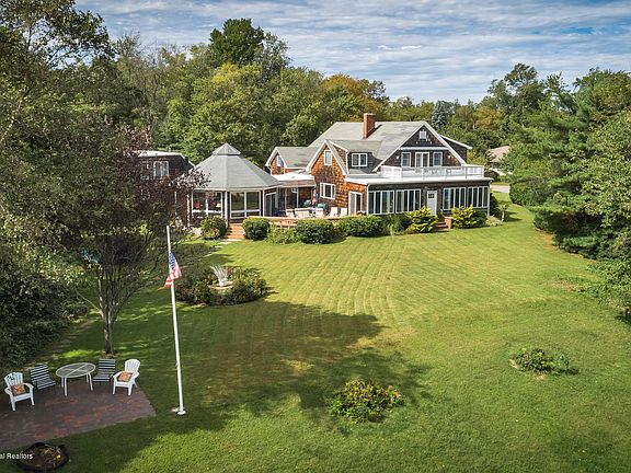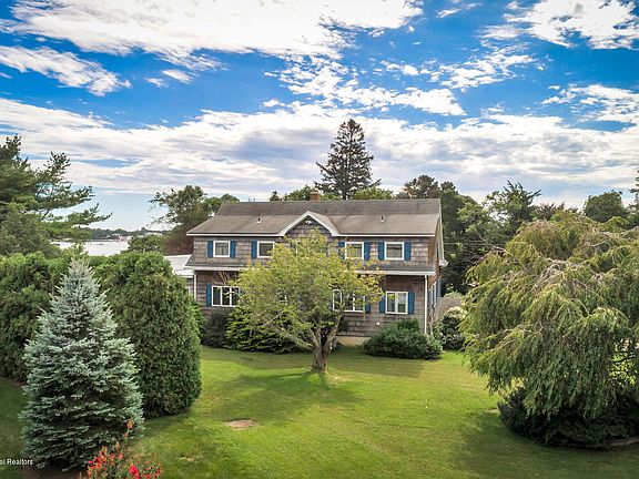Nantucket living in Brielle. Rare opportunity to own this unique 6 bdrm, 4 bath waterfront home. Enter the large foyer which offers spectacular water views. The octagonal great room w/ gas fireplace, walls of windows, hardwood floors & sliders to the deck is the perfect spot for gatherings. Large enclosed back porch to sip your tea while watching the boats go by. Master suite w/ waterfront balcony. Stunning woodwork throughout. Full basement for additional storage as well as a three car garage w/ finished suite above. Captivating views from most rooms. This breathtaking property is a true treasure for the discerning buyer.