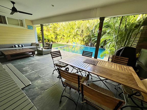 Available November 5th, 2024 A beautiful, fully furnished 5-bedroom, 3-bathroom house with a salt water pool, fenced backyard and a gated front yard, split AC in every room, private driveway. Located between Aina Haina and Hawaii Kai, the house is within a mile from the beach park, tennis courts, children playground, hikes, Costco, grocery store, coffee shops, restaurants and great public schools and a short drive to some of the most beautiful beaches on Oahu, such as Sandy Beach, Waimanalo, Hanauma Bay and 15-25 minute drive to Waikiki and downtown. Available November 5th. Minimum 6 month lease. Small to mid size dog is welcome. Water, pool service, landscape service, pest control service and strong Wi-Fi are all included. Tenant pays electricity. There are 50 PV panels so electricity is usually under $100. This kid friendly, spacious, modern and comfortable house is perfect for families. It offers a large, very private backyard, a beautiful font yard and over 2500 sq/feet of indoor living space. The house has five bedrooms, three bathrooms, one with a tub, two with showers, a very large living room, split AC in every room (except the guest room), a great outdoor, furnished living space and an amazing, Balinese style salt water, heated swimming pool. There are many extra-large windows and French doors. The house is gated and secure with an automatic gate and two parking spaces on the driveway. The house comes fully furnished as seen on the photos. -Bedroom #1 - California King Bed, large closet, split AC unit -Bedroom #2 two twin beds, large closet and a patio to the front yard, split AC unit -Bedroom #3 - twin bed, desk and two closets, split AC unit -Bedroom # 4 queen bed, a desk and a large closet, view to the pool, spit AC unit -Bedroom # 5 serves as a guest room, pull out queen sofa and ensuite bathroom with shower. No AC, but very airy and cool. -Living room large sofa, 70 inch smart TV, desk, sliding doors to the pool and the backyard, split AC unit. -Kitchen A fully stocked kitchen with granite countertops double oven and a cook top. Extra large refrigerator, microwave, a coffee maker, pots and pans, dinning ware and a very charming breakfast nook. -Backyard - The backyard is very private surrounded by Ulrika palm trees, it features a salt water, heated swimming pool, very comfortable lounging area and a dining area. -Swimming Pool - Take a swim in the beautiful, zen, salt water, heated swimming pool. For the safety of young children our pool is fenced all around and has a patented self-closing gate. The pool is 3 and a half deep at the shallow end and 5 and a half deep at the deep end. The fence can be easily removed, however we require that it stays put if there are children under 10 years of age in the house. There are also banana trees, an orange tree, lime tree and tangerine tree. There is a unit attached to the house in the back, but it is very private with its own private entrance and its own private back yard. You wouldn't even know it is there. Some of the best public schools are in the area. Waikiki beach 15 minute drive, Costco, Foodland, Safeway 1 to 2 miles from the house, many cafes and restaurants within 1 to 2 miles, amazing hikes within walking distance, Hanauma Bay, Sandy Beach, Waimanalo within 10 minute drive. Kuliouou Beach Park- 10 minute walk. PM if interested. Please tell us about yourself and who will be living with you. Background and credit check required. $30 application fee per applicant. Rent is $6450, deposit $6450 6 month minimum lease