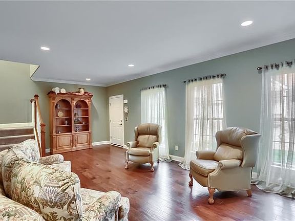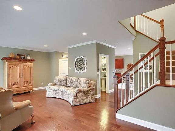 *New Roof* Immaculate custom home with 9-foot ceilings, sprawling scraped Hickory hardwood, cased doorways, crown molding and abundant sun light on the first level. The open staircase has white spindles and square posts. Family room features vivid windows and a modern tone. Custom cherry cabinetry, large pantry, stainless steel appliances, farmhouse sink and a stylish backsplash compliment the granite counters in the chef's kitchen. Dining room has recessed lighting and access to a composite deck. A powder room finishes this level. Ascend to the primary bedroom with a neutral tone, bright windows, ceiling fan, walk-in closet, and private bath with a shower, modern vanity, and custom linen closet. Two guest bedrooms are roomy, have overhead lighting, bright windows, ample storage and share a hall bath with a tub/shower combo. A finished lower level adds additional living space, mudroom, a storage room, and family entrance/laundry room with tile and a shatter proof glass door.