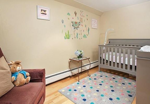 This spacious 2BR/1BA is located in a handsome bow-front brick building and offers a large private patio. The elegant living room features a wood-burning fireplace with mantel, recessed lighting, and hardwood floors. A beautifully updated eat-in kitchen with gray cabinetry, quartz countertops, stainless appliances, and a peninsula with seating, leads out to the lovely enclosed private courtyard. A generous bedroom is located at the rear for privacy and offers double closets plus additional storage under the staircase. There is a well appointed full bathroom with white vanity and shower/tub with tile surround. The front bedroom with wide closet is technically a den, but is currently functioning as a nursery/bedroom. Additional amenities include: in-unit laundry, large entry foyer, and mini-split for air conditioning.