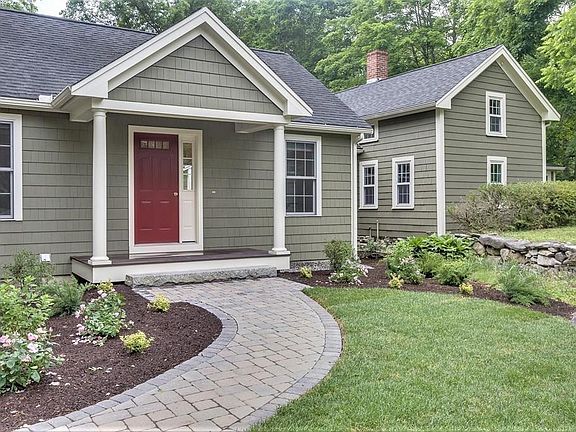 Not your typical colonial, but an antique 4 bedroom cape updated with a substantial addition in 2004 creating a sprawling,exciting home. Situated just out of Acton center on a pretty country acre with a secluded back yard and frontage on Main & Coughlin Streets - just a short walk to Acton Arboretum and connecting trails to Morrison Farm & Bruce Freemen Rail Trail. The heart of the home is the huge cathedral eat-in kitchen with a magnificent circle top window overlooking the lush lawn. The "cooks" kitchen with ample granite counters, stainless appliances and huge center island - perfect for casual dining or family gatherings spills out onto a sizable mahogany deck. The spacious family room opens to another deck with benches, stadium stairs and an enclosed outdoor shower. An office, dining rm, great room and butler's pantry circles back to the kitchen. MBR suite is tucked off a private staircase and enjoys a spa bath, shower and dressing room & 3 season porch.3 brs/bath on the West wing