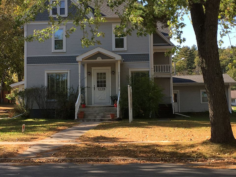 Main floor 2 bedroom apartment, 1.5 bath with laundry room, living room, dining room, huge 3 season porch and attached 2 car garage. All new appliances, cabinets and solid surface counter tops. House has been totally restored. Heat, A/C, snowplowing and lawn care is included in the rent. No pets and no smoking. Stunning home with huge 14' ceilings!! (Fireplace does not work) Owner will deduct $25 per month if tenant is willing to check the vacant upstairs apartment once a week for heat and water issues during the winter months. Garage not available during the week of Cranfest.
