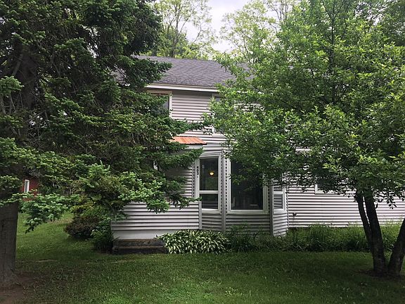 Large single family home that sits on a 1+ acre park like lot! First floor has an eat in kitchen, dining area, large living room with a newer gas space heater. 2 small bedrooms on the 1st floor along with a full bath. Upstairs is older, with plaster walls, hardwood floor, and tons of room for more bedrooms and a bath, or could be easily converted into a 2 family home. Walk up attic, full stone foundation, a patio area off the back, and an older detached 2 car garage. Low taxes!