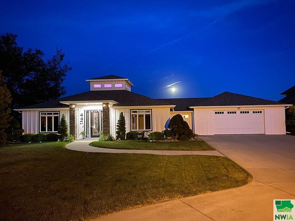 This New American style home is sure to please! This home was built as a zero-entrance with everything being handicap accessible. As you enter the 8 foot front door, your eyes will be immediately drawn to the wall-to-wall windows that sit across across the home. Facing east, you will be sure to enjoy many sunrises to come. This wall of glass opens up so that you can enjoy the outdoors on your spacious patio. With over 550 square feet of patio and the included concrete firepit table, you will be able to entertain the neighborhood. Your back yard overlooks Landsmeer Golf Course Fairway 12. If wall-to-wall windows weren't enough, you will enjoy more natural light that comes from the 20 foot cupola featured in the great room. From the engineered french white oak flooring to the eucalyptus cabinetry, the quality craftsmanship is like no other. The great room opens up into the dining and kitchen area. You will enjoy an industrial-artist-loft feel. A 6x4 island sits between your kitchen and dining area. A unique feature of the island is the hand-washing sink, separate from the main under-mount sink. Located off of the kitchen/dining area, behind the frosted glass barn door, is the laundry/mud room and a powder room that features a maple plywood squared accent wall. This is a spacious area that also leads out to the garage or it leads to your quaint court yard. The master suite boasts an optimist electric fireplace as well as access to the back patio. The main floor also hosts a junior suite with an en-suite full bathroom and a 3rd bedroom. If you thought the main floor was going to be the show-stopper, wait until you enter the basement! Enter...Bar-Cade. With a lounge area and 3/4 bathroom on one side, you can enjoy the large open space on the other. Plenty of room for more living and play. Enjoy the bar area and dining. Basement includes 1 bedroom with room to add more Geo Thermal Heat/AC