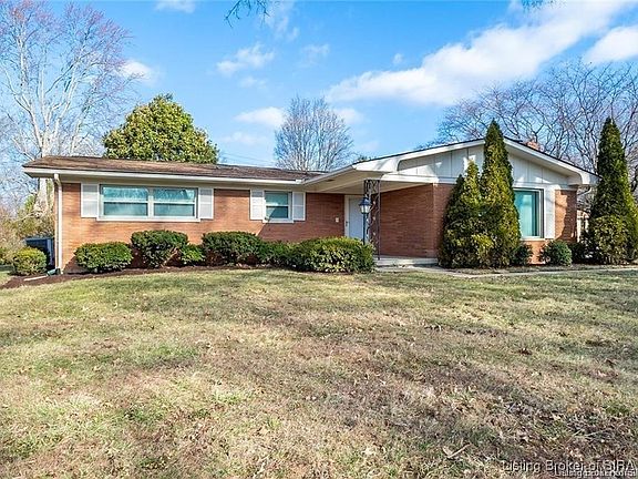Welcome to this stunning MID-CENTURY MODERN, ALL BRICK RANCH in the heart of JEFFERSONVILLE, IN! Situated on a desirable CORNER LOT, this home is just minutes from Big 4-Station Park, The Walking Bridge, Shopping, Dining, and Entertainment, offering the perfect blend of style, convenience, and comfort. Step inside to find BEAUTIFUL HARDWOOD FLOORS flowing throughout the main living areas. A charming WOOD-BURNING FIREPLACE highlights the spacious living room, creating a cozy and inviting atmosphere. The adjoining DINING ROOM provides the perfect space for hosting family meals or dinner parties. The heart of the home is the EXPANSIVE KITCHEN, featuring a large island, ample counter space, and abundant cabinetry—perfect for meal prep and entertaining. With multiple large storage closets throughout, you’ll have plenty of space to stay organized. This home