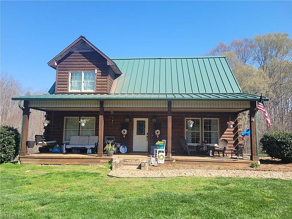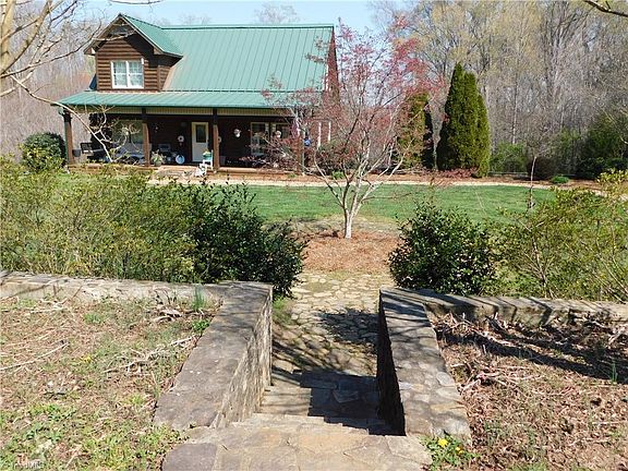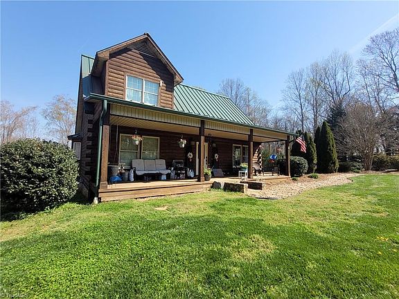Welcome to this lovely log home hidden from view in the heart of Mocksville. Amazing, vaulted ceiling in the living room that is a part of a wonderfully flowing open floor plan. Primary bedroom on the main level with ample storage. New paint and newer carpeting on the second level. Nice sized loft/ office area overlooking the living room. Bonus space in the basement. Enjoy your privacy on the covered front porch or on your oversized back deck. Large, powered workshop for all of your hobby/ storage needs. With 8+ acres of space to make your own, check this one out today!