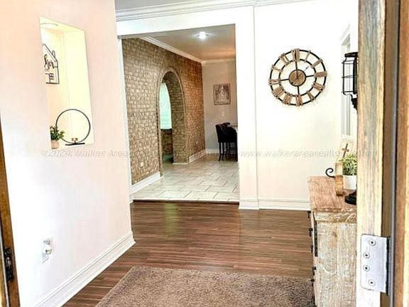 Nestled on a lush acre, this stunning brick home blends elegance & comfort. Inside, enjoy stainless steel appliances, a charming brick archway, & a spacious kitchen with a walk-in pantry. With a large living area and a large master bedroom featuring an expansive bathroom with a walk-in shower & soaking tub. The main floor includes and additional bedroom & bathroom