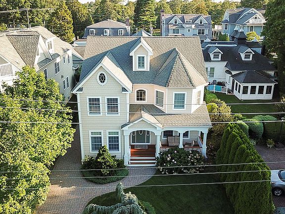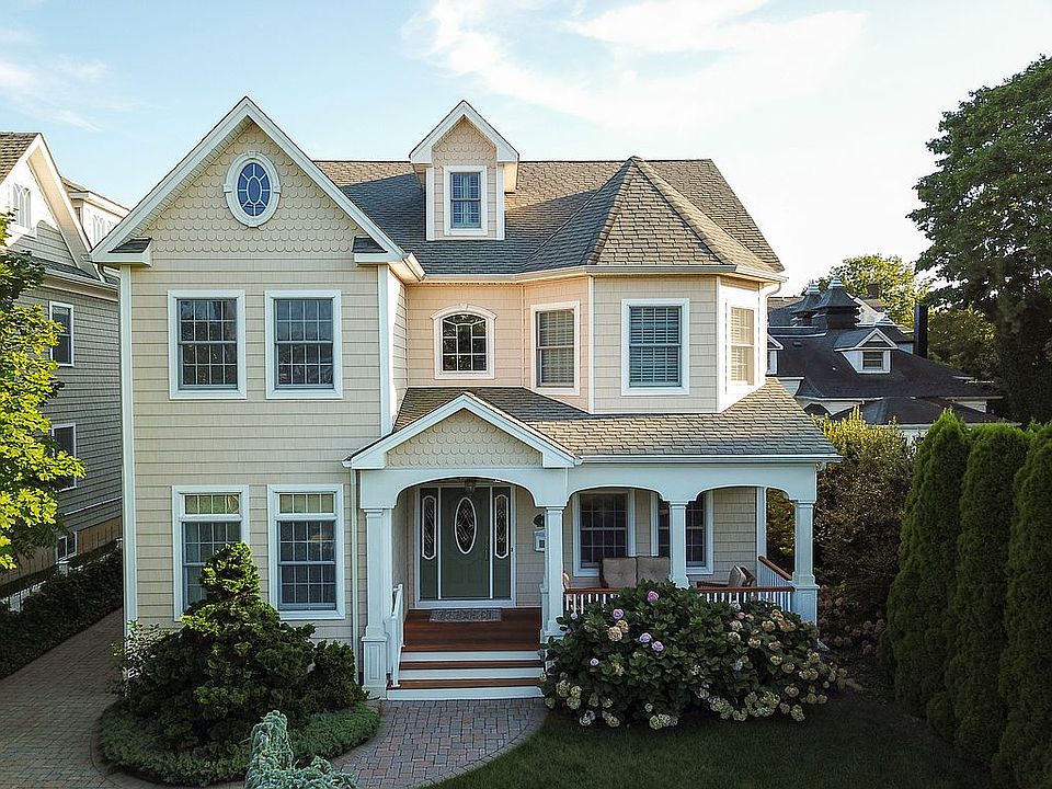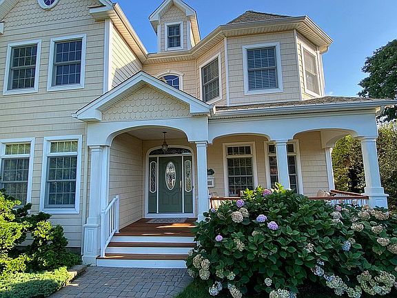 A mahogany front porch welcomes you to this 5 bedroom, 4 ½ bath meticulously maintained Jersey Shore home. This lovely home is perfectly located in the heart of Spring Lake, near the charming downtown, park, tennis courts and a short stroll to the beach. Open floor plan with 9 ft ceilings on the first and second floor and custom crafted wood trim throughout the house. Gourmet kitchen with high end appliances and fine custom Wood-Mode cabinetry, 8 ½ ft long kitchen island, granite countertops and custom marble backsplash. Living room features Mendota gas fireplace with custom mantle. Spacious family room with recessed lighting and ceiling fan. Laundry room located on the first floor complete with Brookhaven cabinets and granite countertops. Easy access to the laundry room and powder room from side entryway. Versatile first floor guest bedroom/optional office with en suite bathroom. Second floor master bedroom and bathroom with vaulted ceilings. Master bathroom offers a custom walk-in shower, Aquatic Century jetted tub, Brookhaven cabinets, Italian ceramic tile and granite countertops. Second floor offers another en suite bedroom featuring walk in shower, and two additional generously sized bedrooms with hallway bathroom featuring separate shower and soaking tub. The home is graced with beautiful light fixtures, recessed lighting, ceiling fans in all bedrooms and custom closets. The sun filled third floor has hardwood floors, Andersen impact resistant windows with architectural flair, open floor plan with 2 recreation areas and study nook. Full basement. 3 zone HVAC. 2 car detached garage with epoxy painted floors. Home security system. Pavers/patio, gas grill, sprinkler system, private backyard filled with luscious greenery.