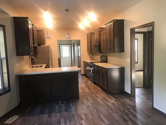 Completely renovated 1300 square feet, ranch-style home with 2 bedrooms, 1 1/2 bathrooms, office, and laundry on main floor. The kitchen has brand new cabinets and appliances. Stairway to the basement has a new banister. The basement (@900 sq ft) has a finished family room, bathroom, and three bedrooms. The 2-stall garage is freshly painted and has extra storage above. This house is a must see for anyone looking for a home in a beautiful small town just 25 minutes from Sioux Falls. Contact Brian Kappenman 605-201-4397
