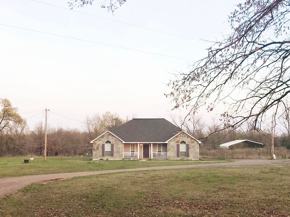 Home on 60 wooded acres with a pond. Many native pecan trees on entire place. Several paper shell pecan trees around home. Several fruit trees. Home has rock on the front. Big back porch with a deck added on. Paved Drive way. Also, has an older home on property that needs to be torn down. Great peaceful place for country living. Great hunting area as a bonus!!! Call 580-326-1022 for more info