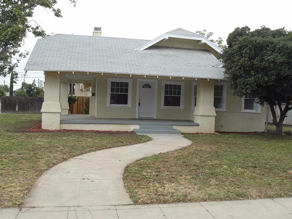 Back on Market! Buyer did not qualify for loan. Beautiful vintage Craftsman house with all the character and charm that makes this a classic and has been newly renovated! Located in the Tower District! Spacious floor plan on a 1/4 acre. Crown moldings and 6 inch base boards throughout. The living room & dining room have ceiling fans, fireplace, built in book shelves, new carpet and beautiful natural light. Nice big formal dining area with a built in China Hutch, and a picture window. The kitchen is an ideal size with a nook/eating area. Indoor laundry room and new tile flooring in the kitchen and laundry room. The kitchen counter tops are newly tiled and the stove area makes quite the impression. 3 spacious bedrooms and an over sized bathroom. The front yard includes a big wrap around porch for those summer days & a nice size basement. This 1/4 acre corner lot pretty much tells you the size. Lets not forget the one car detached garage and the exterior was recently re-dashed/painted