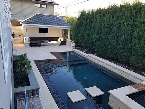 Luxury Coastal Living on the cusp of Margate's most prestigious neighborhood, the Parkway section. Welcome to 403 N. Lancaster, a beautifully appointed five-bedroom, 3+ bath home. Situated on an oversized 65’ x 80’ lot, this exceptional home delivers a rare combination of spacious indoor living and a truly spectacular outdoor oasis. One of the most magnificent rear yards at the shore. A stunning gunite pool is the star of the setting, complete with a relaxing spa, cascading waterfall, and a sun shelf designed for lounge chairs right in the water. Gorgeous stonework surrounds the pool, with privacy fencing and mature landscaping providing a serene, resort-like feel. The expansive covered cabana area elevates the entertainment experience, featuring seating for up to twelve, exterior TV, and a fully equipped outdoor kitchen with barbecue, sink, refrigerator, and bar station. The flow is effortless, creating the ideal space for hosting unforgettable summer days and nights. Inside, the home offers a welcoming coastal elegance. A private front porch leads into a spacious open layout that includes the living room, dining room, and well-designed kitchen, along with a separate den perfect for casual gatherings or movie nights. The spectacular lower-level family room, tiled and complete with a powder room, opens directly to the backyard sanctuary… practically doubling the usable living space. The bedroom layout is exceptional. The primary suite is expansive and private, offering a walk-in closet and a luxurious bathroom finished in rich stone and marble. A guest bedroom suite ensures comfort for visitors, while the remaining bedrooms are all generously sized and share a beautifully renovated oversized bath. Every bathroom in the home has been updated with premium tile, sea-inspired tones, and stylish fixtures, echoing the relaxed sophistication of coastal living. Additional features include: low-maintenance exterior, upgraded Andersen windows, outdoor shower, paver walkways and driveway, insulated two-car garage, and landscaping that enhances both beauty and privacy. This is a rare opportunity to enjoy a spacious, move-in ready home with an incredible yard in one of Margate’s most desirable residential settings. Plenty of room for everyone to spread out between the front porch, multiple family living spaces, and show-stopping pool retreat. Schedule your private tour today. This coastal gem will not last.