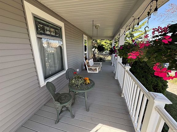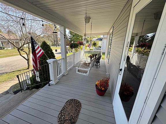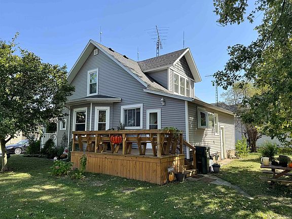 This charming home perfectly captures the essence of small town living. This 3-bedroom, 1.5 bathroom home offers both warmth and character with it's original woodwork, open staircase, and beautiful hardwood floors in both the dining and family rooms. The stained glass windows in the family room and entryway add a special touch. Recent updates include a custom kitchen equipped with stainless steal appliances. The roof was replaced in 2018 along with the windows, siding, wooden deck and composite decking on the front porch. An additional highlight includes a 2 car detached garage with custom shelving for ample storage. This home blends classic charm with modern convenience, making it a perfect place to call home.