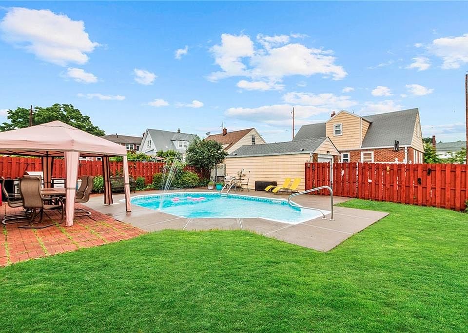 Spacious extended cape with an updated eat-in kitchen and breakfast bar, quartz counter tops and stainless steel appliances. Updated bathrooms. Original refinished hardwood floors. Enjoy your very own oasis, enclosed court yard patio plus an in ground pool with salt water filter and light system for night use. A large yard for entertaining that backs up to a park. Finished basement. Plenty of storage space throughout the house including a cedar lined coat closet. Great corner lot with one car garage on Caroline avenue side. Conveniently located close to major highways. Close proximity to NYC bus line, Linden train station and Goethals Bridge. Highest and best offer by Tue 6/25 5pm