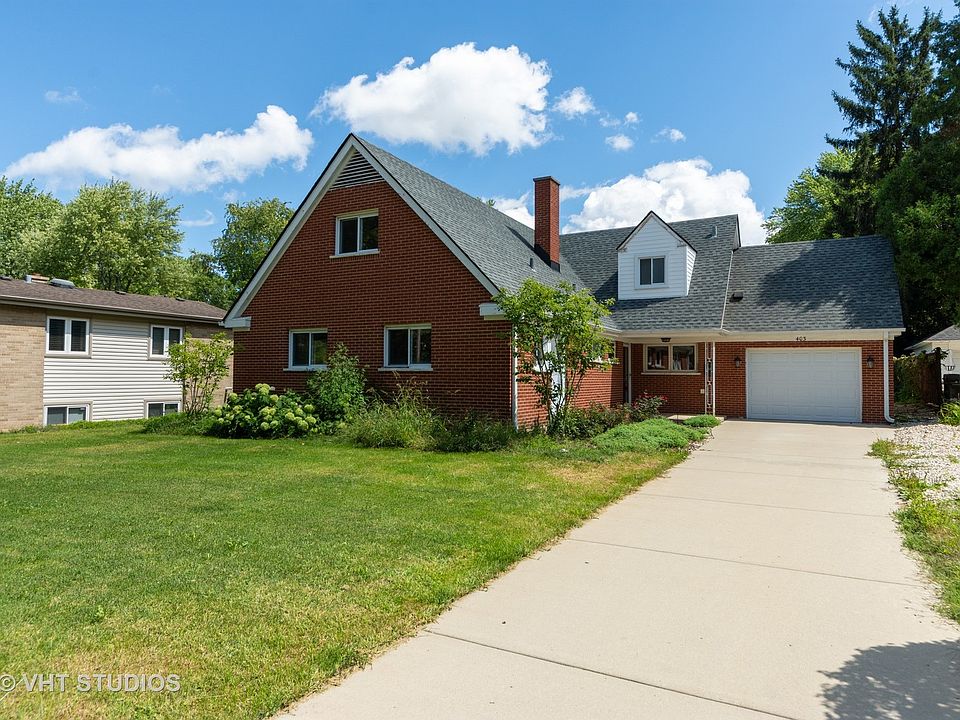 This all brick cape cod home located in downtown Palatine has great potential with 2 large bedrooms on the first floor and an office with separate exterior entrance, 2 bedrooms on the second floor and 2 tandem bonus rooms that can be converted into a large master bedroom , huge living room with a fireplace, and an enormous full basement also with a fireplace. New roof installed in 2016. There are hardwood floors under the carpet up the stairs and throughout the second floor (except for the bonus rooms and bathroom). Beautifully landscaped back yard with a paver patio. Bring your updating ideas to bring this home back to it's former glory.